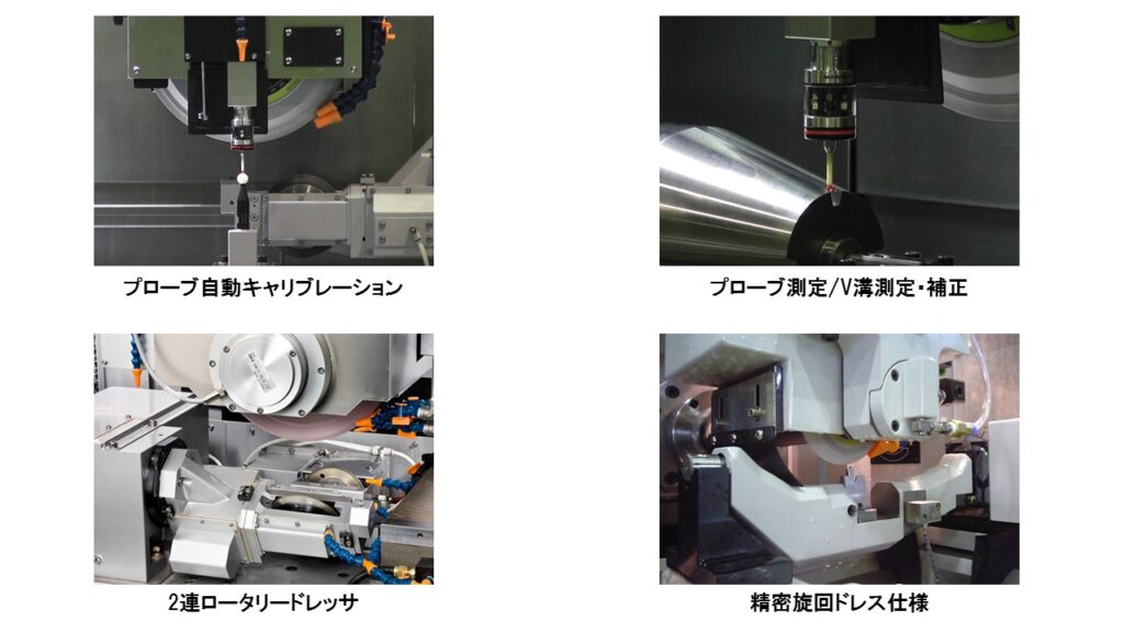 - Simultaneous 2-axes or 3-axes control CNC and table ball screw drive is able to have on machine measurement and versatile grinding process.